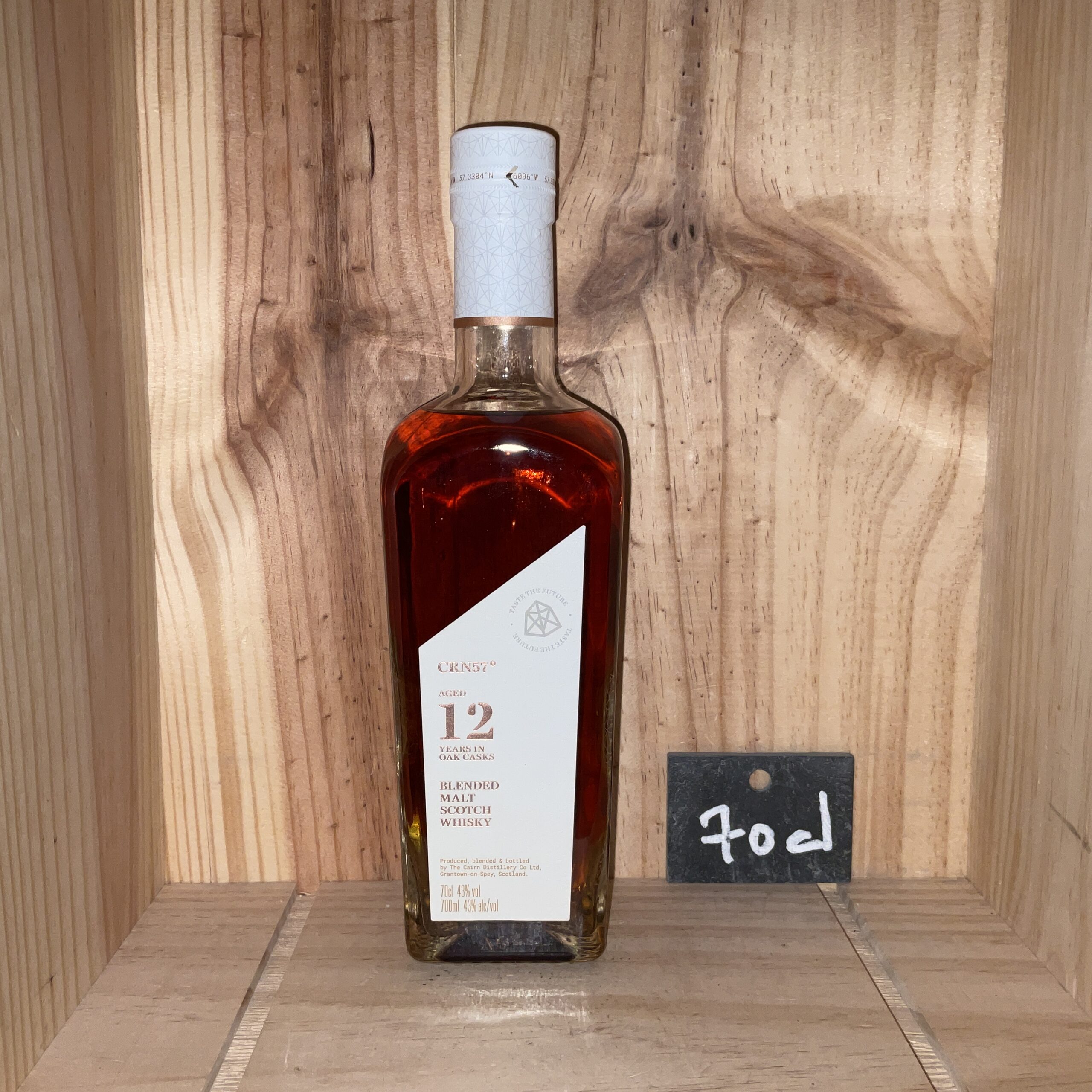 Issu d’une sélection des meilleurs whiskies du Speyside, le CRN57° 12 ans est une projection du futur The Cairn 12 ans. Embouteillé à 43 % alc, c’est un blended malt scotch whisky fruité et rond, aux arômes de pomme, de chocolat et d’orange. Niché dans le parc national des Cairngorms, The Cairn est un nouveau lieu où les amateurs d’aventure et de whisky peuvent explorer et s’inspirer de ce que l’Écosse a de mieux à offrir. Fondée en 2022 par l’embouteilleur Gordon & MachPhail, la distillerie The Cairn propose la gamme CRN57° en attendant de commercialiser ses premiers single malts. Fort du savoir-faire et de la richesse des chais de Gordon & MacPhail, ces blended malt scotch whiskies offre une projection de ce que seront les expressions de la distillerie à 12 ans, 25 ans, 30 ans, 57 ans et 70 ans. Un voyage gustatif imaginé par Stuart Urquhart et ses équipes pour faire voyager les amateurs à travers les vallées du Speyside.